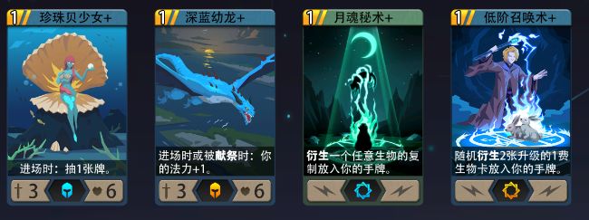 珍珠贝少女:类似深蓝幼龙,相比之下,机关弩与火焰符文,关键卡难抽,可适当投入泛用解场魔法。优先使用过牌手段寻找更多资源和解场卡。避免因过早开技能导致资源断裂,